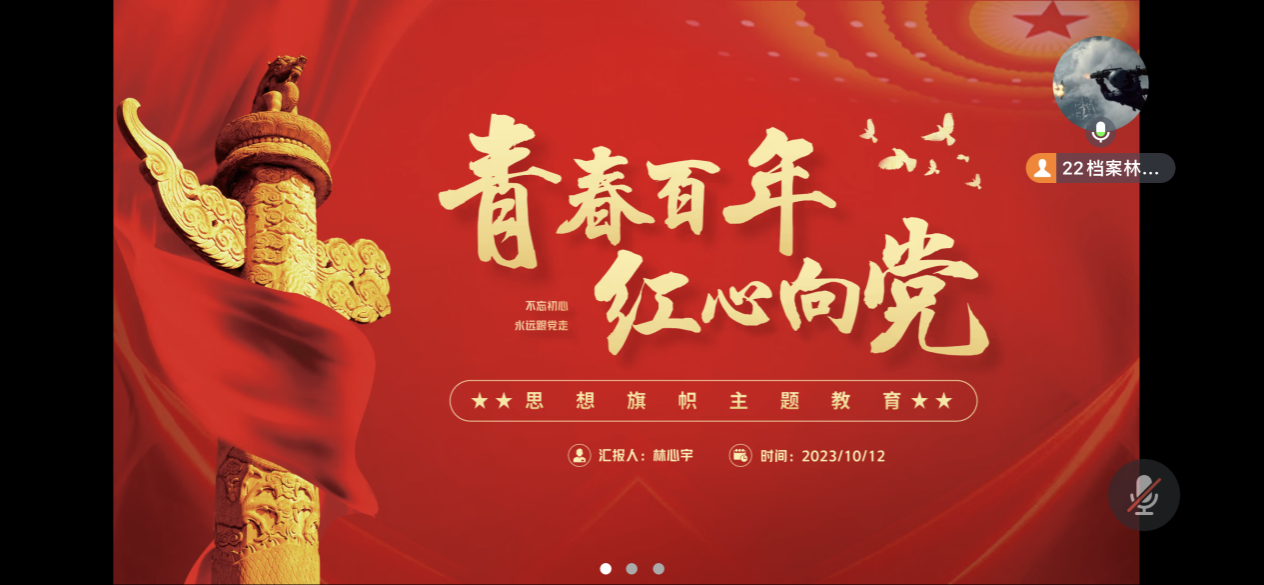 高扬思想旗帜,青春红心向党。10月12日晚,2022级档案学团支部开展“青春百年,红心向党”线上主题团课。团支部书记林心宇带领同学们回顾百年来党的奋斗历程,引导同学们感受中国共产党不忘初心、牢记使命,“为中国人民谋幸福,为中华民族谋复兴”的伟大意志,激励同学们高扬思想旗帜,青春红心向党,以奋斗与昂扬的姿态奋进新征程。